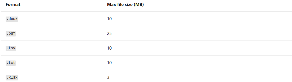 - Độ dài và các ký tự có thể sử dụng cho tên và nội dung dữ liệu trong knowledge base.