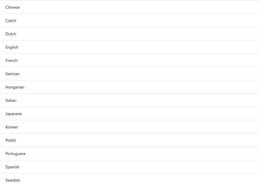 Các ngôn ngữ QnA Maker hỗ trợ.