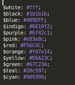 Ví dụ, ta tạo 1 file _colors.scss như sau:
