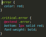 Như ta có thể thấy ở trên, chúng ta sẽ sử dụng từ khóa @extend để chúng ta sử dụng được hết tất cả các thuộc tính của class error trong class critical-error. Điều độ tiện ích cho chúng ta đỡ phải lặp lại những đoạn mã CSS giống nhau trong khi viết CSS, trông đoạn mã CSS sẽ rất clear hơn rất nhiều đó
