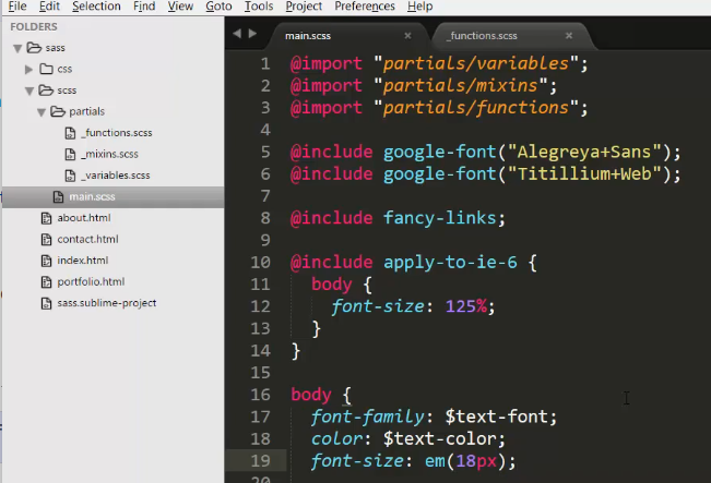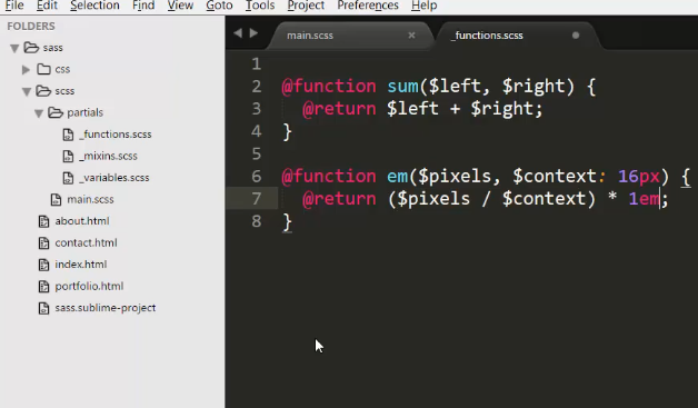 Chúng ta có thể tự tạo 1 file , nơi mà bạn sẽ định nghĩa ra tất cả các function mà bạn định nghỉ để sử dụng. Ví dụ, mình định nghĩa 1 file _functions.scss như sau: