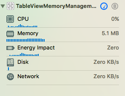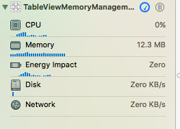 Với cách tạo tableView như trên ta đã khởi tạo và thêm 1000 cell vào tableView khi ứng dụng chạy xong hàm viewDidLoad() và đã chiếm hết 12.3 MB bộ nhớ ram. Nếu số cell nhiều hơn nữa thì sẽ càng chiếm rất nhiều bộ nhớ, khả năng crash app do hết bộ nhớ là có thể xày ra. DequeueReusableCellWithIdentifier sẽ giúp ta giải quyết vấn đề này.