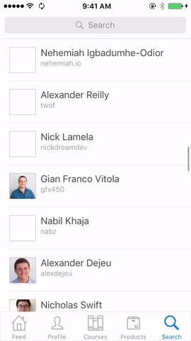 Tuy nhiên, nếu bạn đưa dữ liệu hình ảnh vào trong cell và bạn sroll với tốc độ nhanh cùng với kết nối internet lại không tốt, lúc này dữ liệu của bạn có thể sẽ bị sai so với thứ tự hiển thị trên TableView hoặc sẽ hiện thị các cell với dữ liệu cũ. Đó là vì khi ta tái sử dụng cell, các dữ liệu mới chưa kịp cập nhật lên cell nên các cell được tái sử dụng sẽ hiển thị lại dữ liệu cũ.