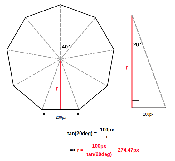 Kia là sơ đồ vòng xoay của mình với 9 mặt và kích cỡ tương ứng với slide của mình. Vậy là cần dịch chuyển mỗi mặt theo chiều Z lên 274.47px thôi, nhớ là translate phải sai khi rotate nhé: