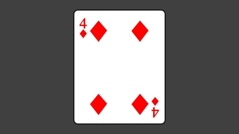 Nhìn tấm bài này thì có nhận xét như sau: lá bài có 2 mặt khác nhau, 1 mặt 4 rô, 1 mặt là nền bộ bài. Vậy mình sẽ vẽ 2 mặt lá bài khác nhau và úp lưng vào nhau nhé: