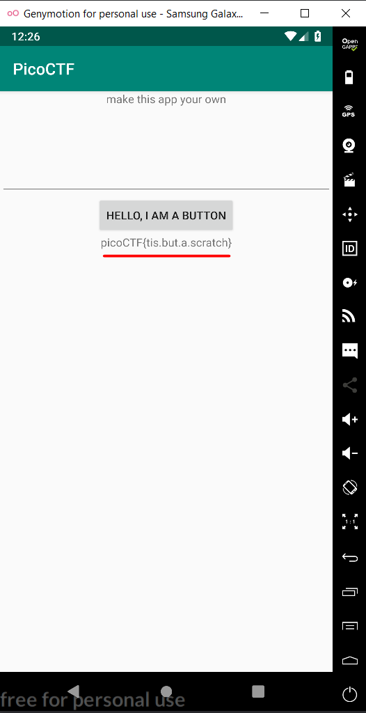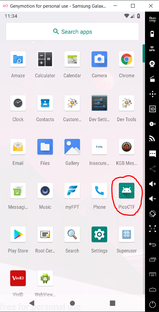 Sau khi cài đặt thành công, trong thiết bị giả lập đã có thêm app PicoCTF