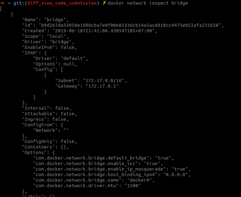 bridge network được hiện diện trên tất cả các Docker hosts nếu như chúng ta không chỉ ra container sẽ chạy trên network nào. Chúng ta có thể xem thông tin bằng câu lệnh docker network inspect