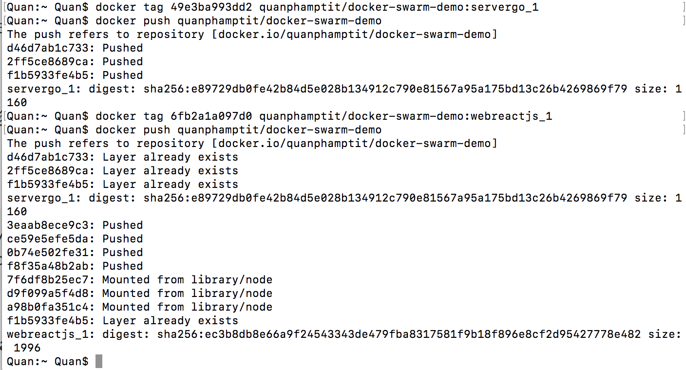 Vậy là ta đã push thành công 2 image và giờ ta cần deploy stack :