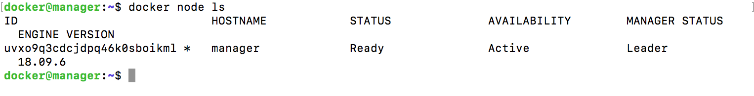 Những node (machine/vps) là manager thì mới có xem list này và dấu * cho biết bạn đang ở node manager nào trong swarm. Ở đây ta chỉ có một node manager và node này đang ở status Ready. OK ! vậy là xong nhiệm vụ ở con manager.