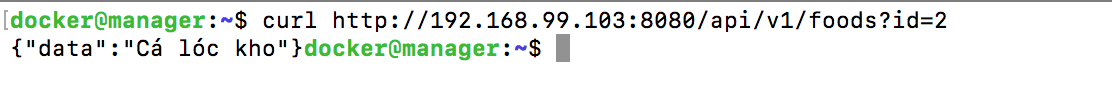$ curl http://192.168.99.103:8080/api/v1/foods?id=2