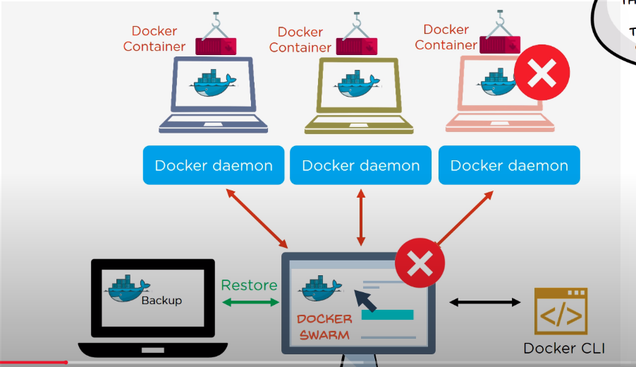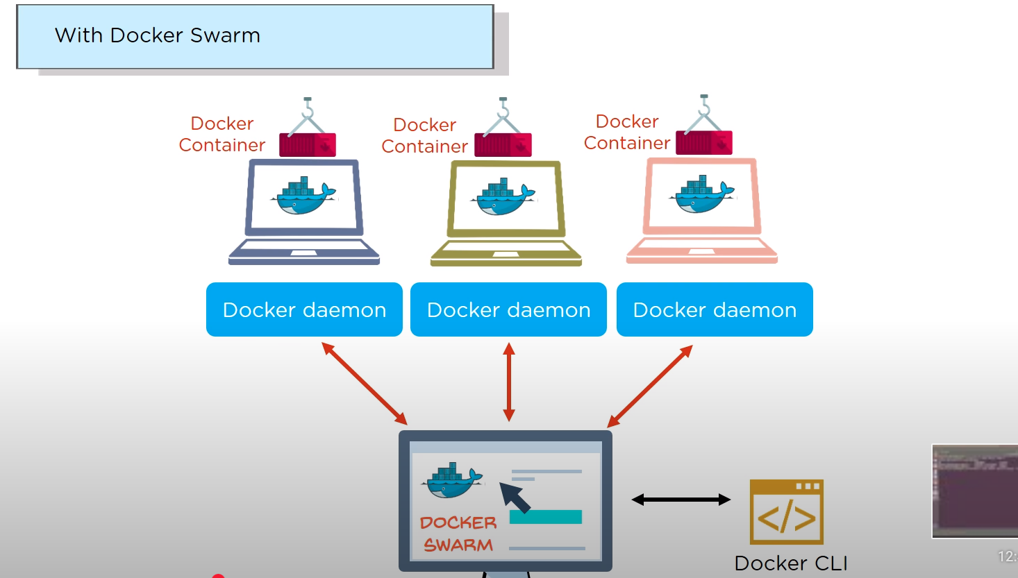Tuy nhiên khi sử dụng Docker Swarm các containers sẽ được quản lý bằng một Docker CLI chung.