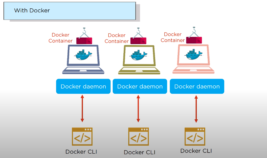 Với việc quản lý bằng docker cơ bản, mỗi container sẽ được quản lý bằng các Docker CLI riêng biệt.