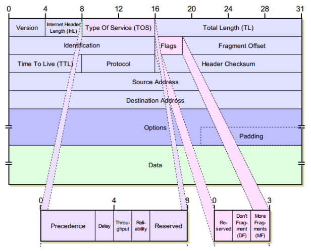 - Service Type (8 bit): đánh dấu dữ liệu (marking) phục vụ cho tác vụ QoS với các gói tin IP