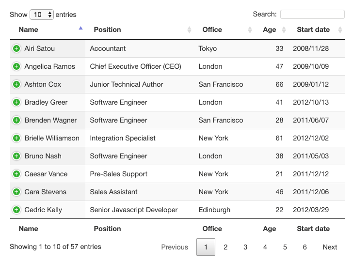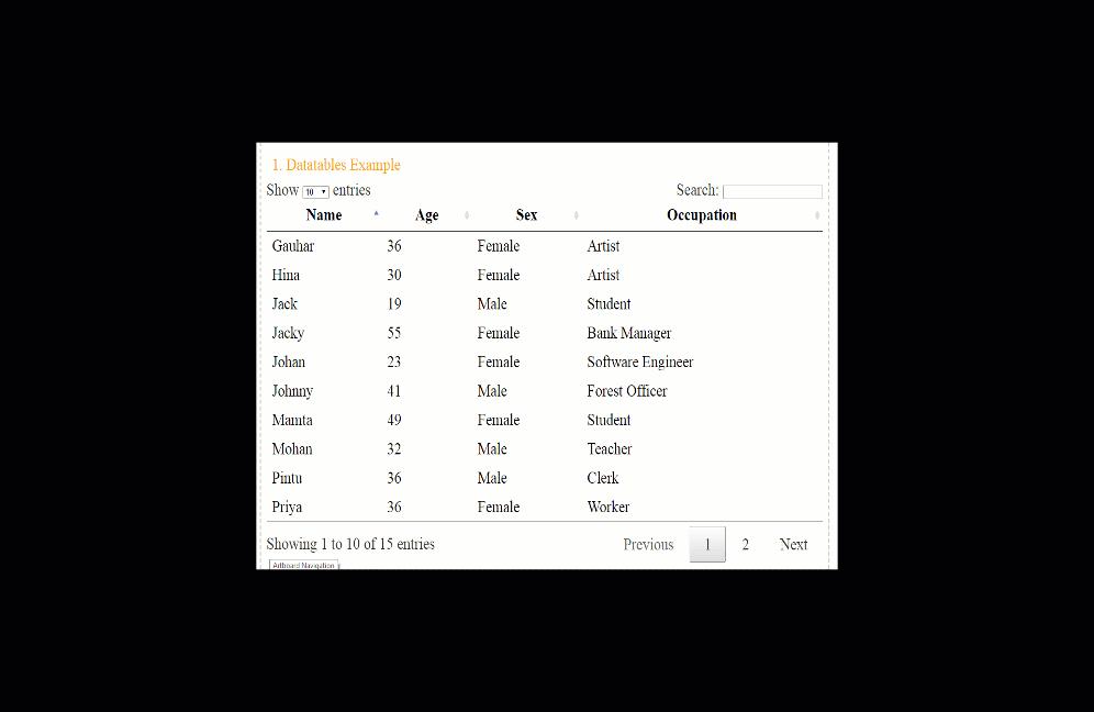 Ví dụ cơ bản jQuery DataTables