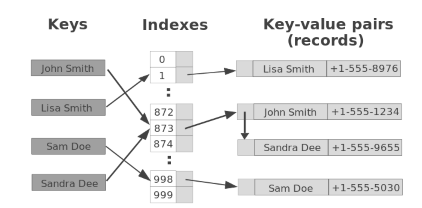 Trước tiên mình cũng xin giải thích ngắn gọn: Hash Table là một tập các cặp key-value không theo thứ tự, và mỗi key là duy nhất (unique). Hash table thường được sử dụng để triển khai dữ liệu dạng collection có cấu trúc như Map, Set ... Và có thể dễ nhận thấy trong các ngôn ngữ lập trình phổ biến như Java, C++, Python, Go. Hash table thông thường sẽ có các hoạt động cơ bản bao gồm: tìm kiếm, thêm và xoá. Array hay Linked List sẽ không thể đạt được những điểm sau: