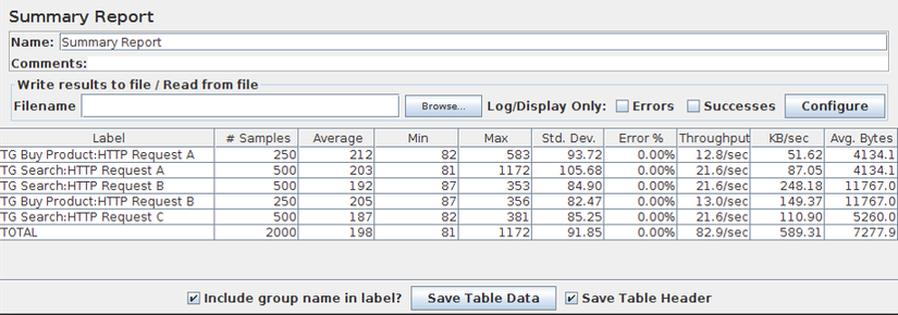 - Summary Report: Cung cấp báo cáo về các giá trị: thời gian phản hồi thấp nhất/cao nhất, số yêu cầu xảy ra lỗi, lưu lượng trung bình.
