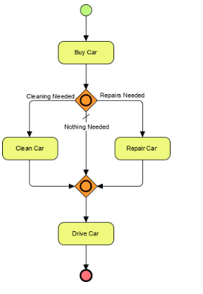 Một trong các action sẽ được thực thi. Việc lựa chọn phụ thuộc vào điều kiện logic tại Gateways.