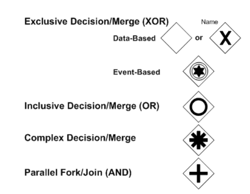 Event được mô tả bởi một hình tròn, trống ở giữa, cho phép thêm vào các ký hiệu mô tả các loại sự kiện xảy ra khác nhau.