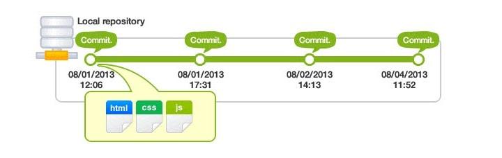 Khi thực hiện, repository sẽ ghi lại sự khác biệt giữa lần commit trước so với hiện tại. Chúng được ghi nối tiếp nhau theo thứ tự thời gian. Do đó, bạn có thể xem lại lịch sử thay đổi trong quá khứ dựa theo các commit trước đó
