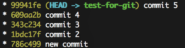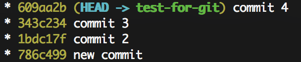 Đầu tiên hãy check log: git log --oneline --graphvà xem history commit, chúng ta thấy như sau: