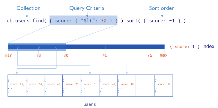 Indexes nó hỗ trợ việc thực thi những câu lệnh query một cách hiệu quả. Nếu không có các Indexes. Nó phải thực hiện việc quét qua tất cả các document trong collection để chọn những document phù hợp với câu lệnh truy vấn. Nếu như có Indexes thích hợp cho câu lệnh query thì MongoDB này có thể sử dụng chỉ mục để hạn chế số lượng document cần phải kiểm tra. Cụ thể mongoDB sẽ chia nhỏ document của chúng ta tương tự như thế này.