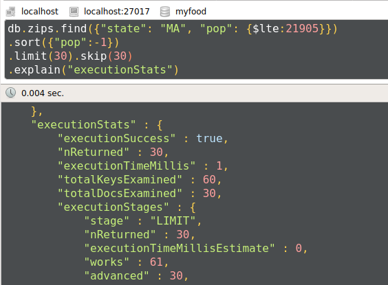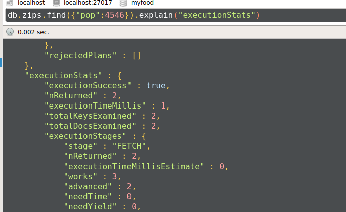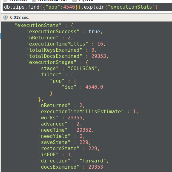 db.zips.find({"pop":4546}).explain("executionStats")