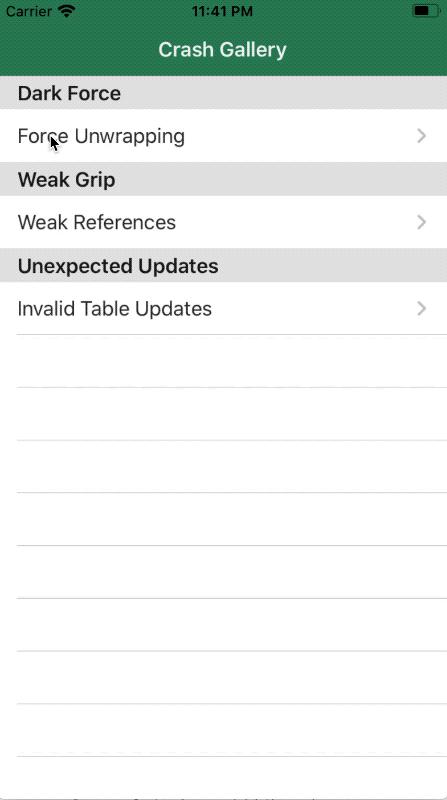 Project đưa ra một số tình huống phổ biến khiến app của bạn bị crash. Nó được làm chỉ để thể tái hiện những "kịch bản" crash và giúp bạn hiểu chúng.