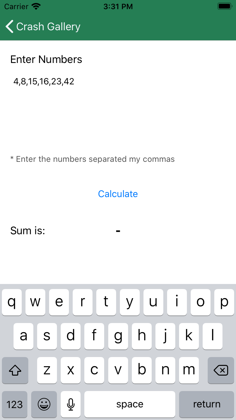 Nó không bị crash nữa, nhưng nó đã được fix hoàn toàn chưa? Thay vì thêm số, hãy xóa số cuối cùng và thử lại.