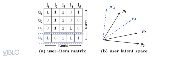 - , lần lượt là các ma trận hàng (vector) one-hot biểu diễn cho user u và item i.