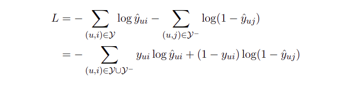 Đây chính là hàm mục tiêu của các mô hình xây dựng theo phương pháp NCF. Hàm mục tiêu này có thể được tối ưu dựa vào các phương pháp tối ưu truyền thống như SGD hay Adam. Nó tương tự như hàm mục tiêu binary cross-entropy loss (hay còn gọi là log-loss).