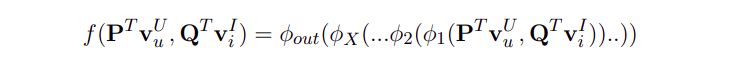 - và lần lượt là các ma trận tầng embedding chiếu , vào không gian các thuộc tính ẩn. P và Q là ma trận trọng số giữa tầng input và tầng embedding.
