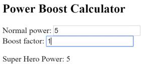 Super Hero Power: {{power | exponentialStrength: factor}}