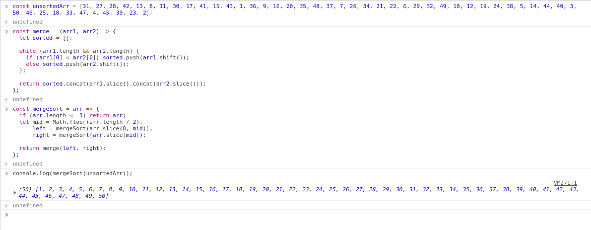 const mergeSort = arr => {