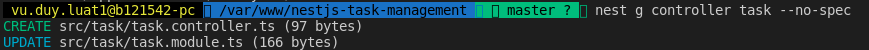 Sử dụng nest g controller {name controller} để tạo controller cùng file test.
