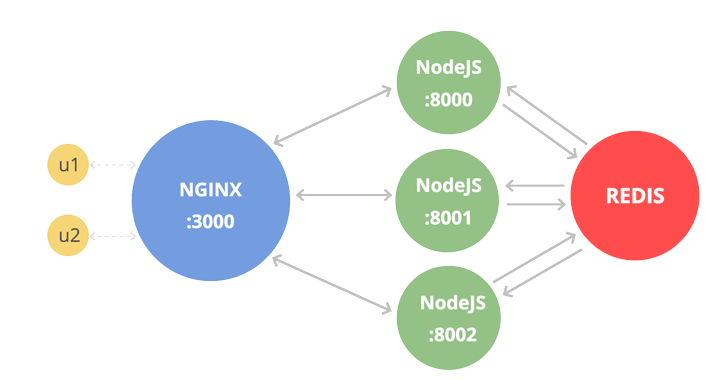 U1 connect với server Nodejs:8000 và gửi data qua lại với nhau tương tự U2 connect với Nodejs:8001 có thể thấy ổn đúng k nhưng thực ra là không ổn chút nào vì chúng chỉ gửi data qua lại được cho server websocket chúng kết nối với chứ bây giờ làm sao có thể chuyển tin nhắn thông qua các server websocket mà chúng k kết nối với cũng có thể nhận được tức là khi u1 gửi data thì u2 có thể nhận được hay nói cách khác làm thế nào để nói chuyện được giữa các server websocket như hình trên.