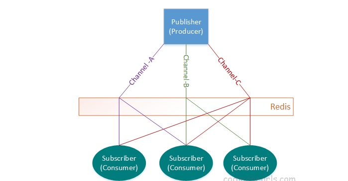 Hiểu đơn giản giống như các bạn xem truyền hình cáp vậy (ví dụ như SCTV), chúng ta là các consumer, đăng ký (subscribe) vào các kênh như: VTV1, VTV3, VTV6, HBO, Fox Movies…. thì SCTV chính là một producer, đẩy dữ liệu (publish) ra các kênh tương ứng đó và chúng ta chỉ nhận và xem trên TV thôi.