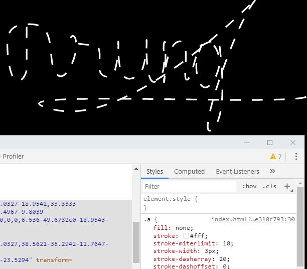 Từ 2 cái trên, ta sẽ có ý tưởng là chỉnh dasharray (khoảng cách giữa nét đứt) dài bằng chính độ dài của chữ ký, sau đó để dashoffset (dịch nét đứt) bằng đúng chiều dài của chữ ký đó để dịch chữ ký biến mất (lúc đó màn hình ta sẽ hiển thị đoạn bị đứt của chữ ký đó, nhưng vì khoảng cách đoạn bị đứt dài bằng độ dài chữ ký, nên ta sẽ chẳng thấy gì nữa). Sau đó ta sẽ giảm dần dashoffset xuống 0 để quay về chữ ký ban đầu.
