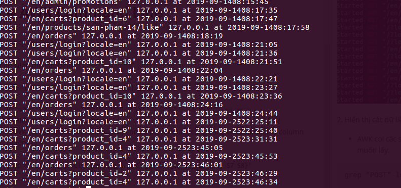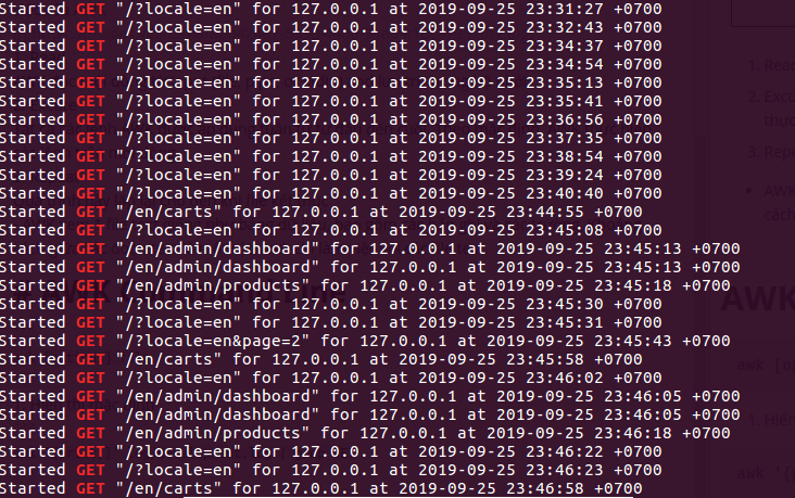 - AWK coi các space là column, AWK còn có thể sử dụng cùng với grep, $number là column muốn lấy.