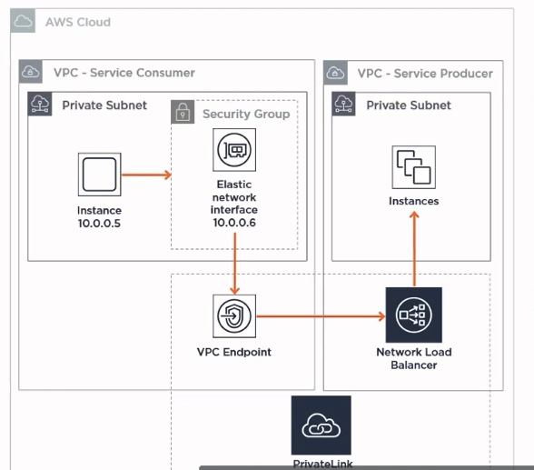 Khi mà bạn đã xác định được Endpoint của dịch vụ đó, traffic sẽ đi tới Network Load Balancer tại VPC của Dịch vụ đó, và cuối cùng là tới dịch vụ của người cung cấp dịch vụ