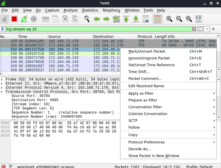 Thực hiện bắt 1 lưu lượng bất kỳ.