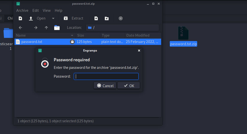 Bẻ khoá mật khẩu file ZIP. Trong trường hợp này, ta có file password.txt.zip được mã hóa với mật khẩu không biết trước