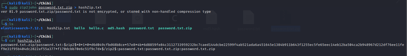 Đầu tiên, ta sử dụng lệnh zip2john password.txt.zip > hashZip.txt để lưu mã
