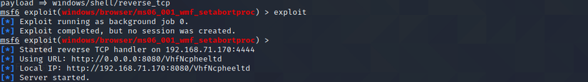 Thực hiện exploit, metasploit sẽ tạo ra 1 URL