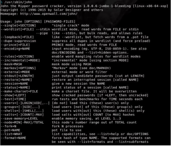 Được phát hành lần đầu vào năm 1996, John the Ripper (JtR) là một công cụ bẻ khóa mật khẩu ban đầu được sản xuất cho các hệ thống dựa trên UNIX. John the Ripper hỗ trợ một danh sách khổng lồ các loại mật mã và hàm băm. Nó được thiết kế rất dễ sử dụng và có tích hợp cả tính năng tự động nhận diện thuật toán hash, thế nên chúng ta không cần phải xác định thuật toán rồi mới crack giống như Hashcat.