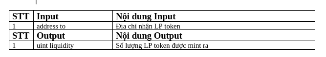 4.mint: trả về địa chỉ to lượng LP token mint ra sau khi add liquidity với cặp token