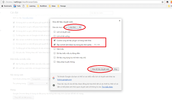 Cách xóa bộ nhớ Cache: