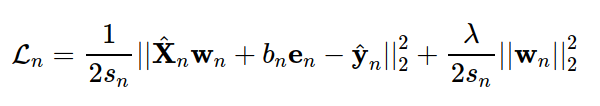Vì hàm mục tiêu chỉ phụ thuộc vào các items đã được rated, ta có thể rút gọn nó bằng cách đặt ^yn là sub vector của y được xây dựng bằng cách trích các thành phần khác dấu? ở cột thứ n, tức đã được rated bởi user thứ n trong ma trận Y. Đồng thời, đặt X^n là sub matrix của ma trận feature X, được tạo bằng cách trích các hàng tương ứng với các items đã được rated bởi user thứ n. Khi đó, biểu thức hàm mất mát của mô hình cho user thứ n được viết gọn thành công thức (*):