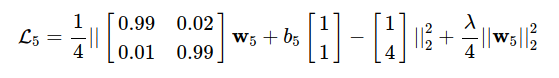 Trong đó, thành phần thứ hai là regularization term và λ là một tham số dương. Chú ý rằng regularization thường không được áp dụng lên bn. Trong thực hành, trung bình cộng của lỗi thường được dùng, và mất mát nên Ln được viết lại thành: