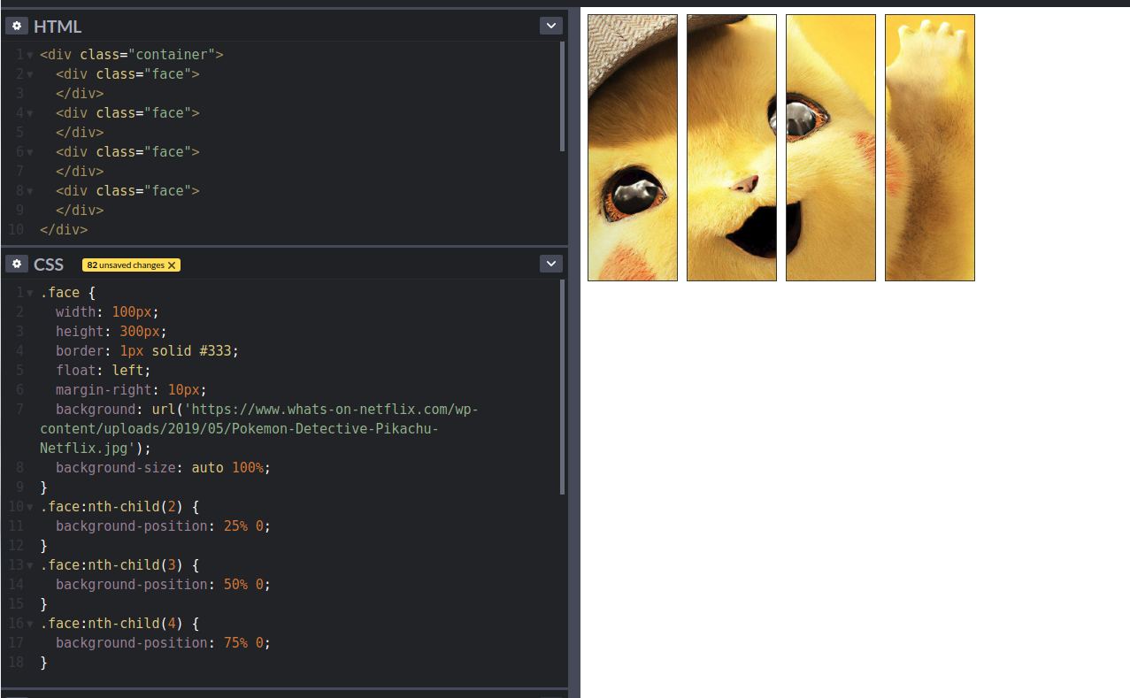 Vậy với hình ảnh đầu tiên là cái thùng phuy, nếu muốn chèn 1 background-image vào thì làm sao để hiển thị cho đúng trên mỗi hình phẳng cấu thành? Mình sẽ đặt background image có chiều cao phù hợp, và dịch chuyển background-image vào vị trí tương ứng với số thứ tự của mỗi hình phẳng nhé