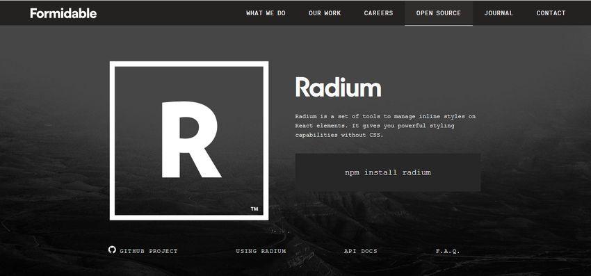 Radium là một bộ công cụ để dễ dàng viết React component styles. Nó giải quyết các trạng thái trình duyệt và truy vấn phương tiện để áp dụng styles chính xác cho components của bạn, tính đặc hiệu hoặc sự phụ thuộc thứ tự nguồn.